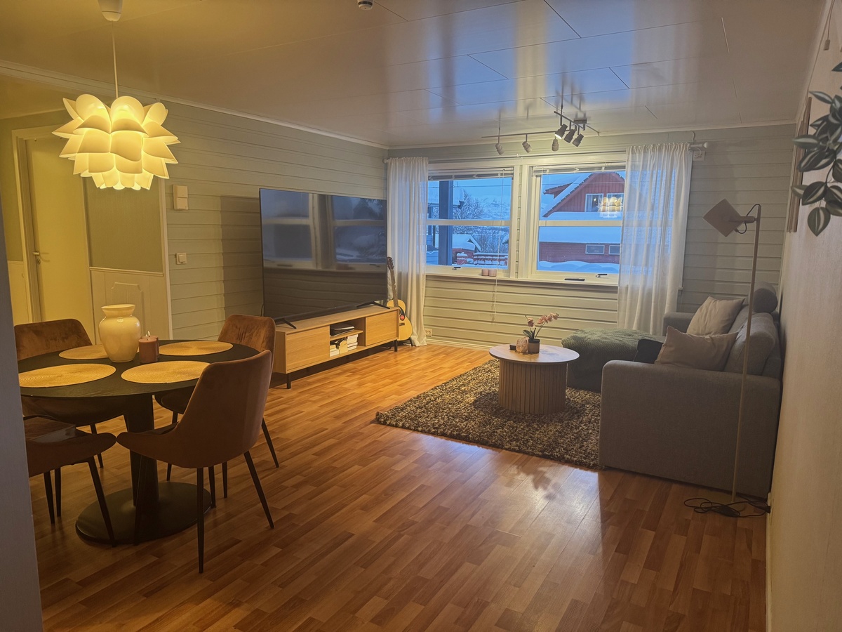 Stor og trivelig leilighet i Hamna ledig for langtidsleie. Leiligheten har store rom, og en romslig bod. Leiligheten leies ut umøblert, men har hvitevarer på kjøkkenet. Huset ligger i et rolig strøk med lite støy og biltrafikk. Gangavstand til butikker, og 50 m til turterreng og busstopp.