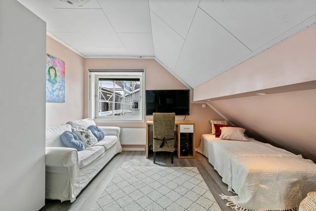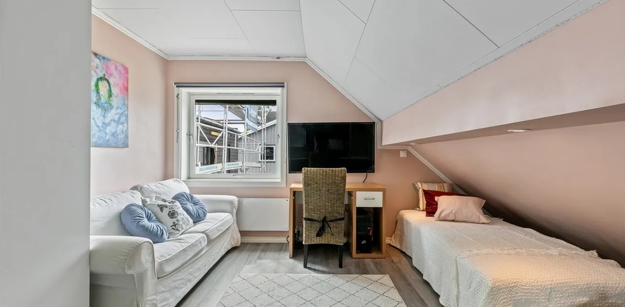 Det ledige rommet er svært romslig, og mange møbleringsmuligheter. Vi kan være behjelpelige om du ønsker det.
