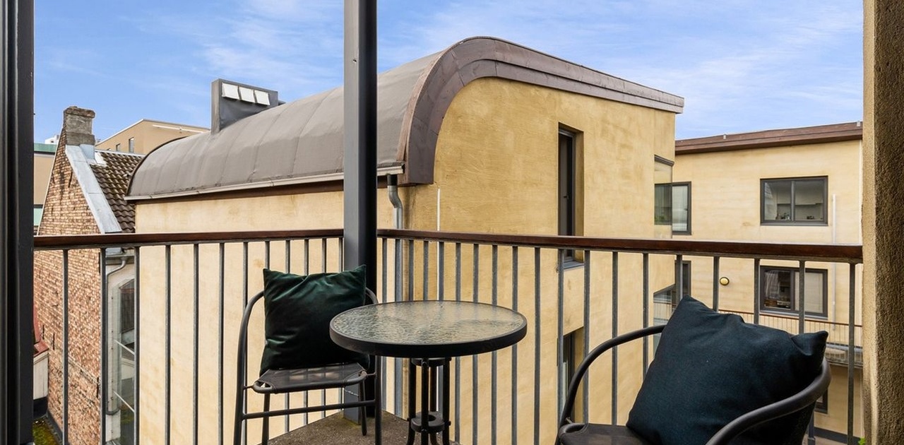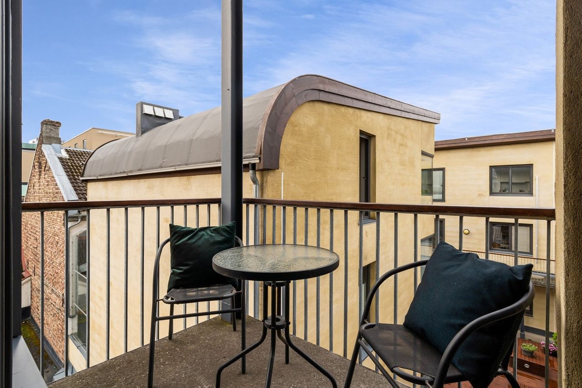Boligen passer spesielt godt for par, og leies ut fullt møblert. Den har balkong samt tilgang til felles takterrasse. Oppvarming fra radiatorer, Internett og TV er inkludert i leien.