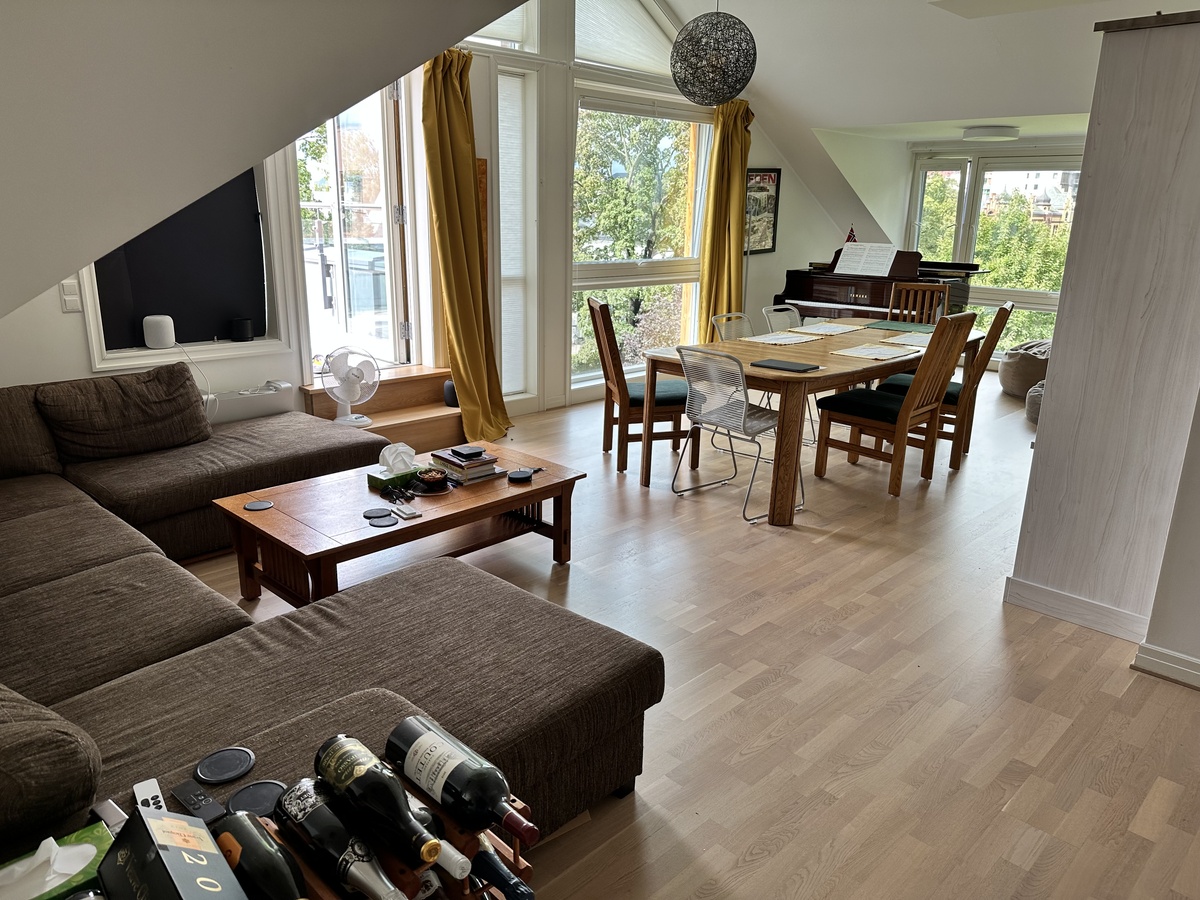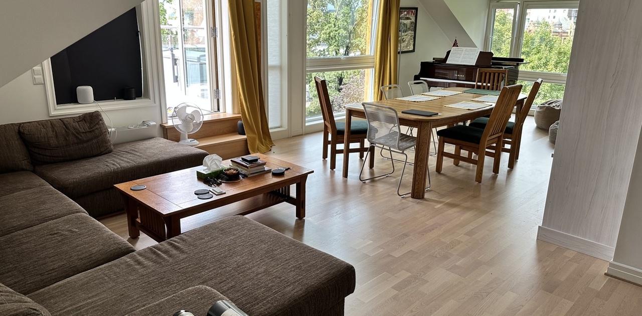 Leiligheten har tre soverom - alle med plass til dobbeltseng. Rommene er henholdsvis på 12m2. To store bad pluss gjestetoalett. Stort kjøkken og romslig stue. To deilige terrasser. Et piano. Parkering i garasje er mulig. Svært sentralt med nærhet til busser og T-bane. 700m til Karl Johans gate, 500m til St. Hanshaugen park.