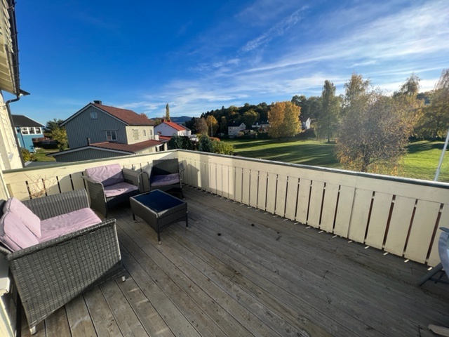 Leiligheten ligger over 2 plan med seksjonert loft, solrik veranda, stor hage og friluftsområde, hundegård og garasjeplass på en av de mest populære boligområder på Lade, bare få meter fra strand, sjø, Ringvebukta og Ladestien. Skjødsel av uteområde deles.