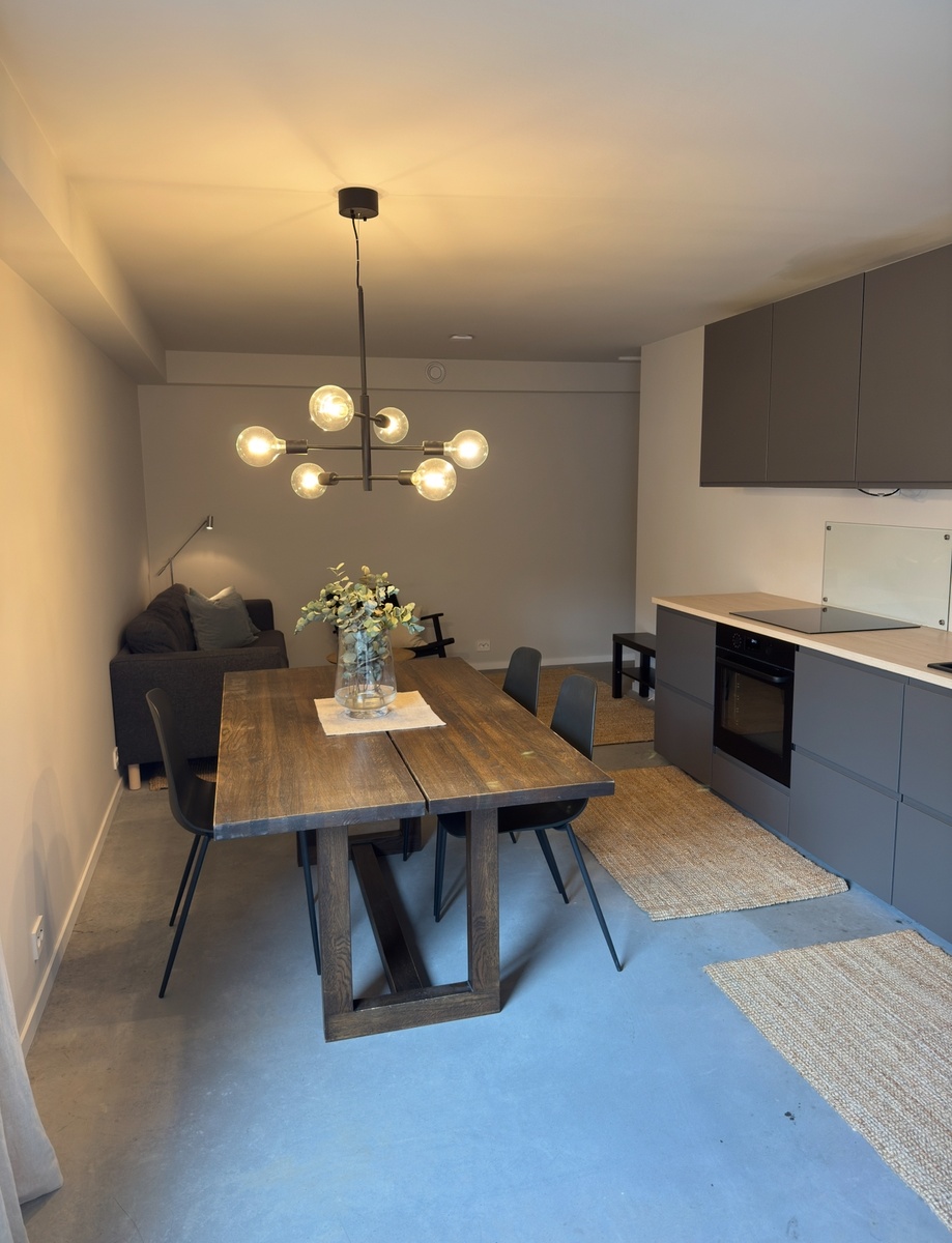 Lys og moderne kjellerleilighet nær Universitetet i Agder – perfekt for studenter eller firmautleie! Kan leies av 3 eller 4 personer.