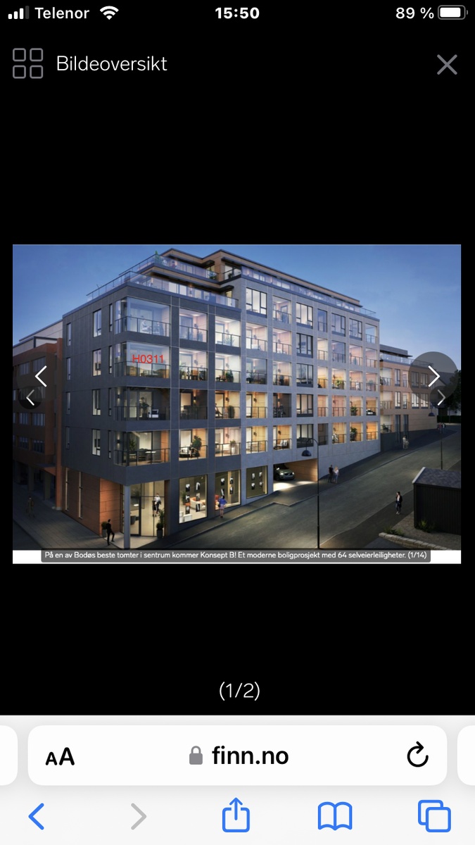 2 roms hjørne leilighet H0311 til leie midt i byen i konsept B. God utsikt. Bruttoareal på 46m2 med Innglasset balkong på 6 m2. Sportsbod på 2,5 m2.