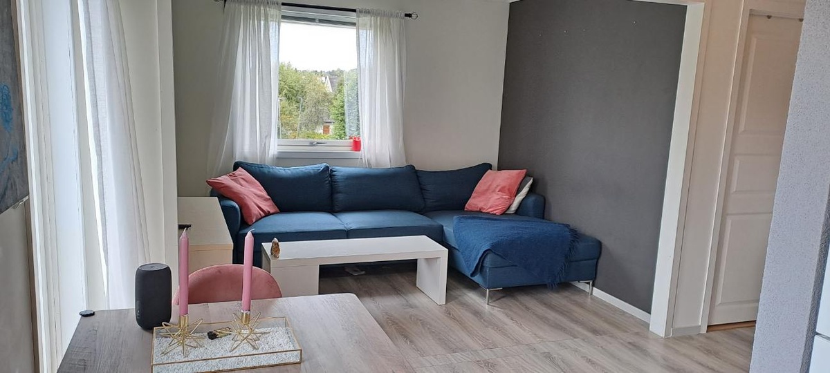 Leier ut en moderne og nyoppusset leilighet over to plan med 2 lyse soverom, romslig stue, og solrik balkong – perfekt for avslapping og sommerdager. Leiligheten ligger i et rolig og familievennlig nabolag, med kort gangavstand til butikk, skole og buss.