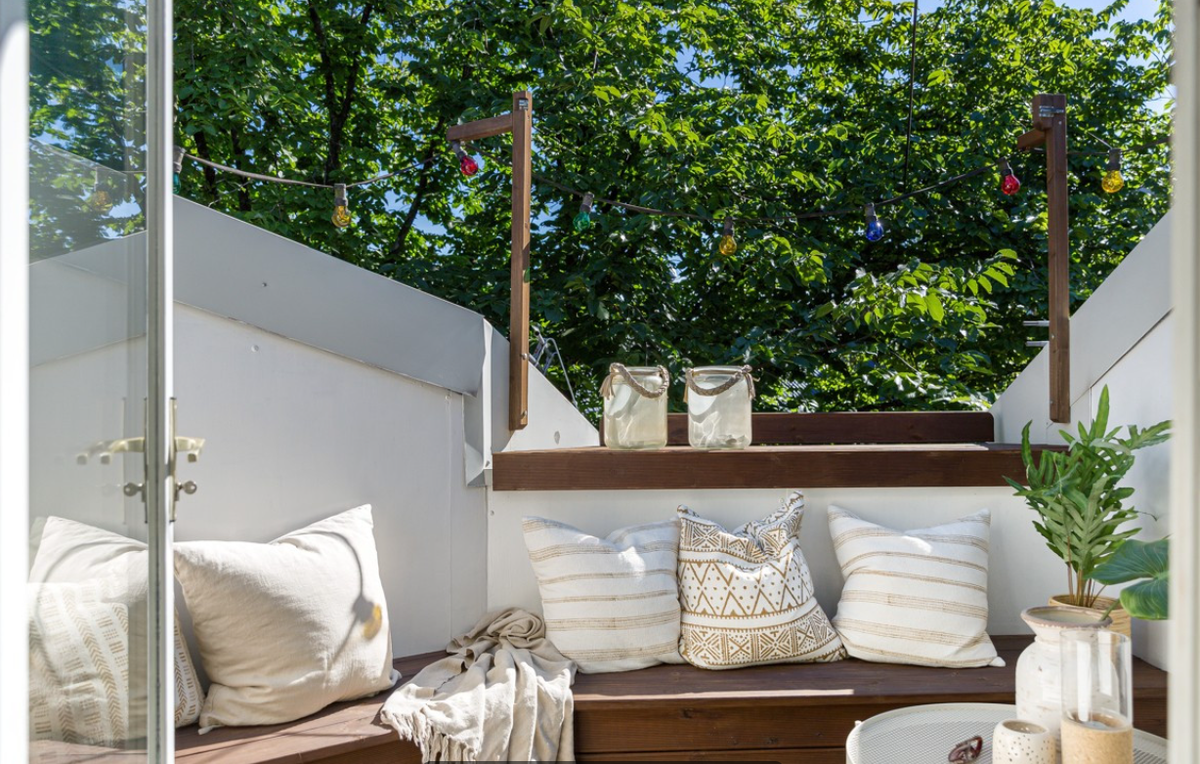 - Balkong med utsikt mot den flotte bakgården