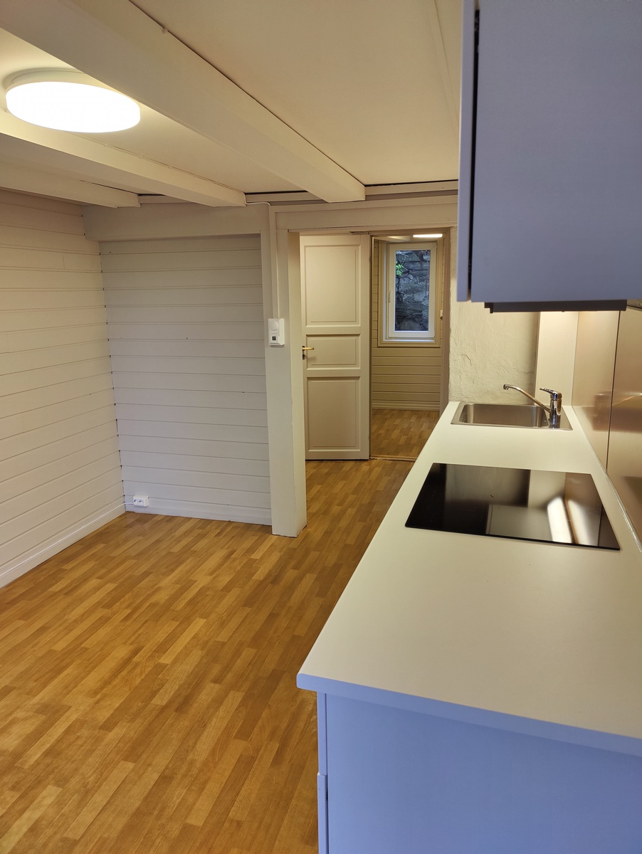 Boligen er akkurat blitt nyoppusset og består av nytt kjøkken/stue/gang på 17kvm, soverom på 5kvm og bad på 4kvm.