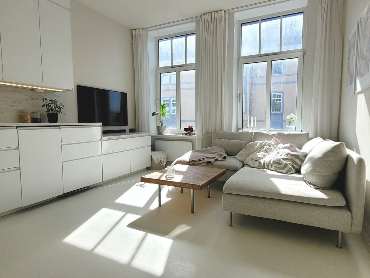 Lyst å flytte rett inn uten for mye styr? Her følger både sofa, tv, bord, seng, kjøleskap/frys, oppvaskemaskin og vaskemaskin med.