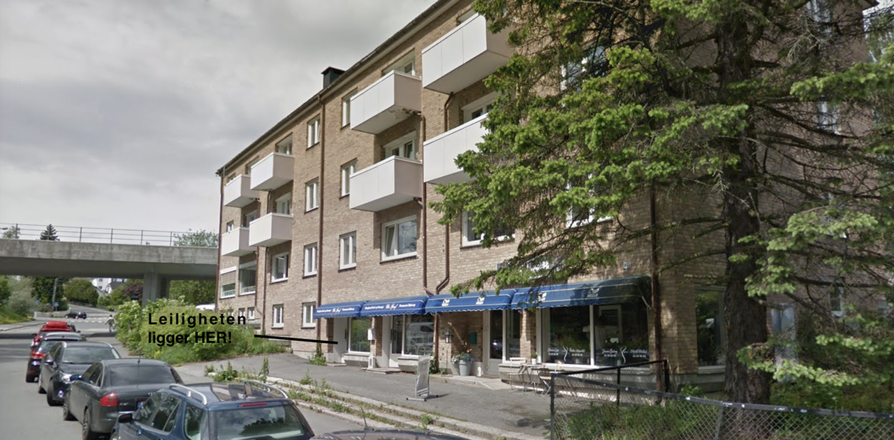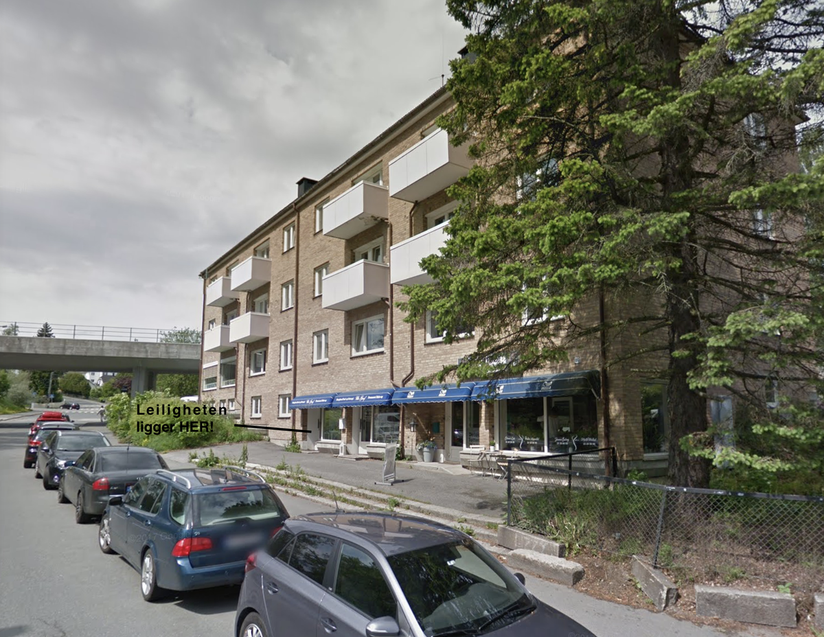 Leilighet ligger vis á vis (til venstre for)Hudpleie og frisør i Sandstuveien 46.