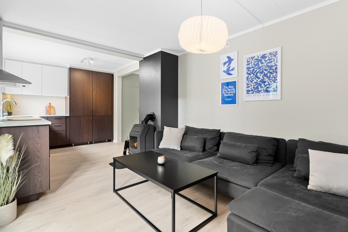 Boligen har smartlås med kode, 250 Mbps mesh-nettverk, vaskemaskin og tørketrommel. Den har også sentralkoblet brannalarmanlegg med detektor i alle soverom.