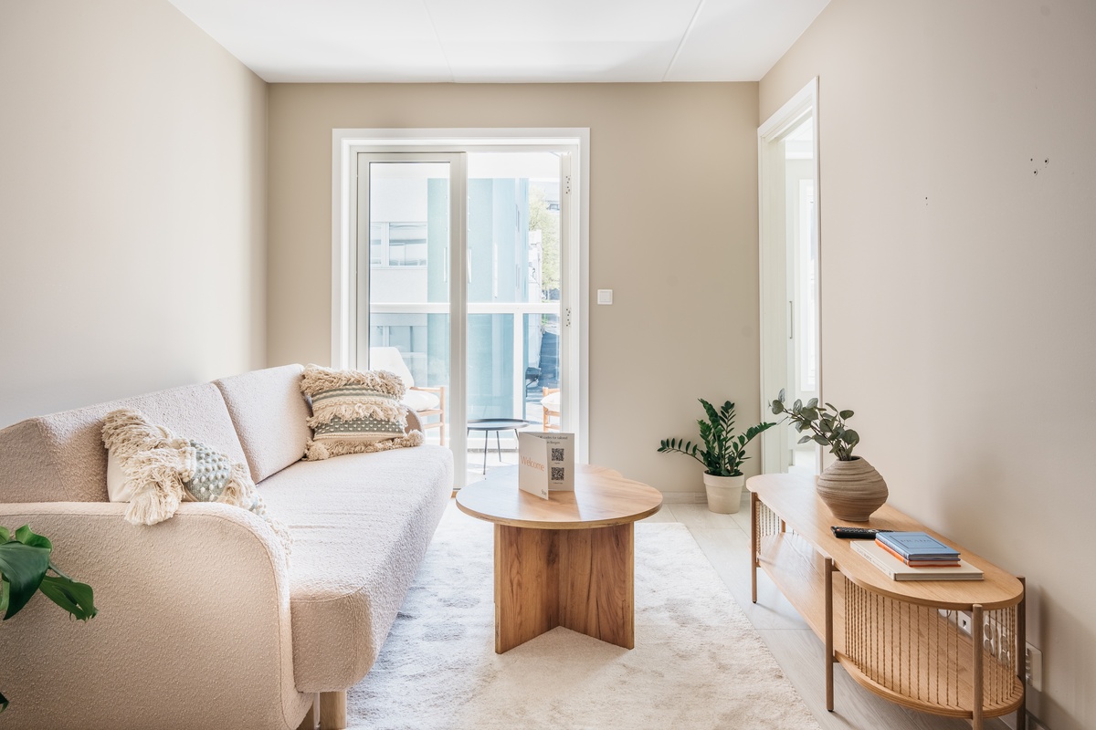 Moderne leilighet med balkong og stor felles takterasse. Fullt møblert.