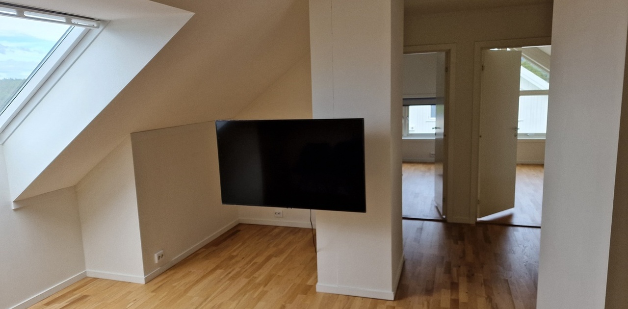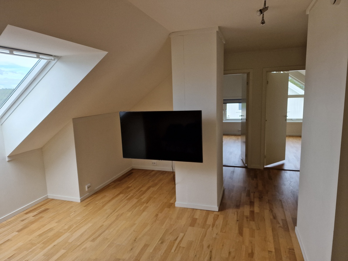 Moderne svært stor seksjon over 2 etasjer, bygd 2012. Gulvvarme. Moderne Ventilasjonssystem i alle rom. Spektakulær utsikt. Sol hele døgnet. 2 flotte bad og 3 soverom, samt eget vaskerom med både vaskemaskin og tørketrommel. Meget god plass. Følger også med tilgang til stor bod utenfor. Svært barnevennlig og nytt boligområde. Egne parkeringeringsplasser medfølger (2stk) og det er lett å gjesteparkere. Flere turstier og turområder rett i nærheten.