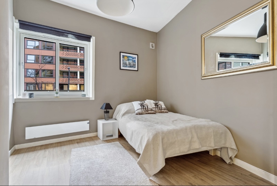 Jeg leier ut ett rom i min 3-roms leilighet. Leiligheten består av to soverom, hvorav det ene er mitt og det andre er det som nå leies ut. I tillegg finner du en romslig stue, åpen kjøkkenløsning med nyere kjøkken (2022), samt bad.
