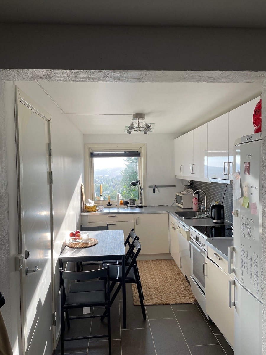 Kjøkkenet er fullt møblert, og har oppvaskmaskin, komfyr, micro, kjøl/frys og vannkoker.