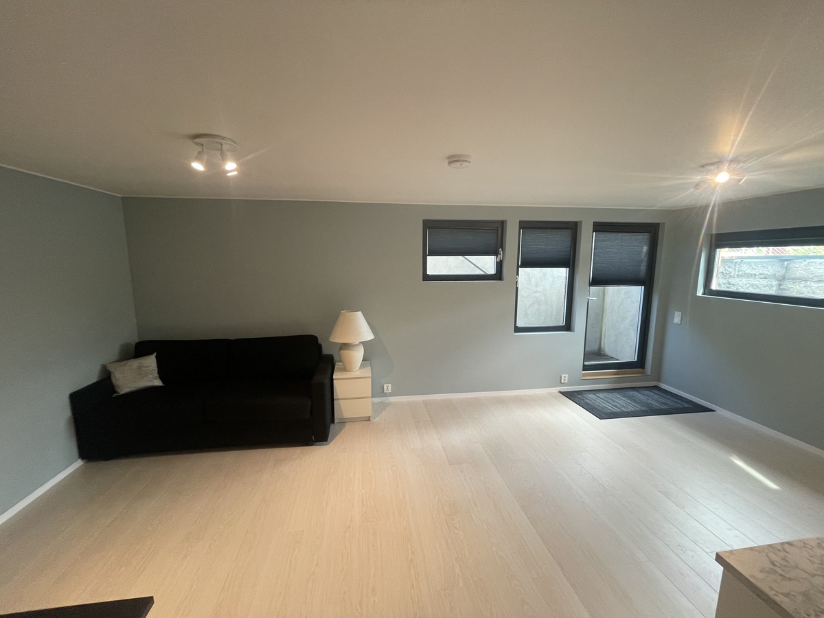 Ny hybel. Alt av kollektivtrafikk, spisesteder, kjøpesenter, bibliotek, SATS og svømmehall m.m. - i umiddelbar nærhet. Møblert, hvitevarer - kan flytte rett inn.
