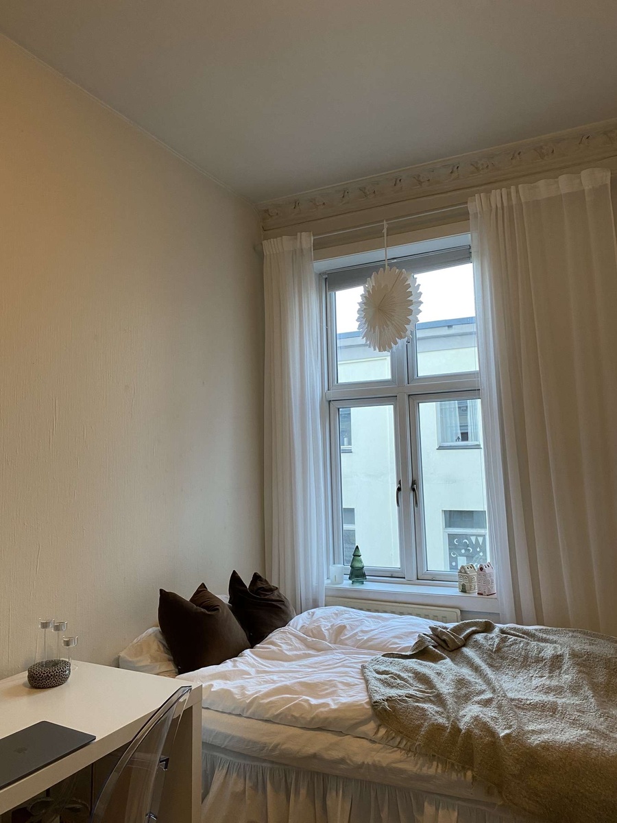 Jeg heter Hedda, er 28 år og jobber i Oslo kommune innen helse- og omsorgstjenester. Jeg leier en leilighet av Thon Eiendom sentralt i Oslo sentrum sammen med en annen, som nå skal flytte ut. Leiligheten har 2 soverom, stue, kjøkken og bad. Jeg søker en ny leieboer som ønsker en koselig, sentral og rolig leilighet. Depositumet står på en depositumskonto hos Nordea. Leien betales samlet fra min konto, så husleien betales til meg som jeg videre betaler avtalegiro med. Strøm og nett kommer utenom husleie, og dette går også fra min konto, som deles på to. Leiligheten er møblert, har alt av hvitevarer og vaskemaskin, og har bod på loftet. Soverommet er møblert med kun klesskap. Det kan settes inn en 1.20 seng dersom ønskelig.