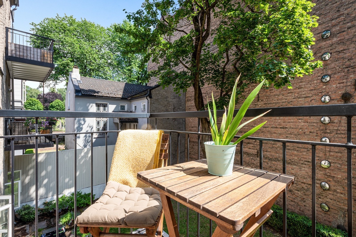 Leiligheten ligger meget sentralt til på St. Hanshaugen i en rolig og tilbaketrukket sidegate med en grønn og frodig bakgård.