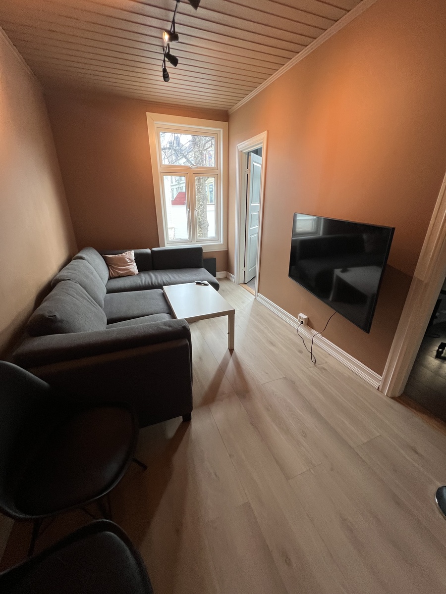 Super leilighet med fire soverom til leie. Stort kjøkken og nyrenovert bad. Nye vinduer. Sentral beliggenhet. Møblert.