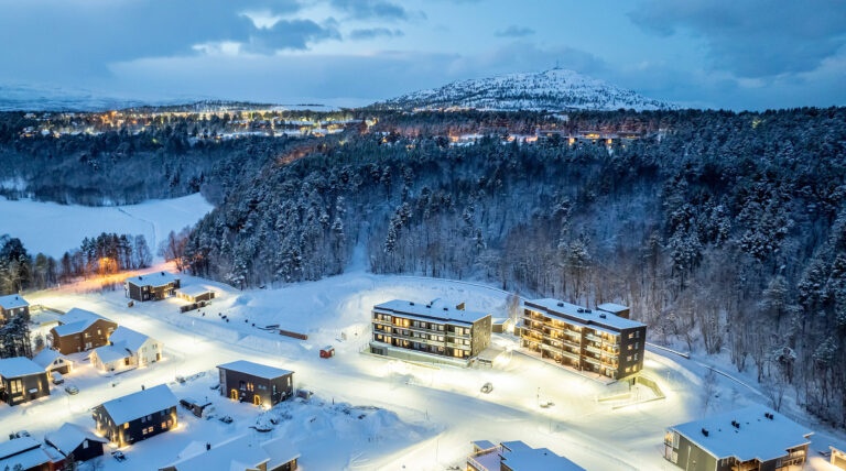Felles utearealer er tilrettelagt for både trivsel og funksjonalitet. Her finner du en velutstyrt lekeplass med sittebenker, gjesteparkering, grøntområder, og belysning med pullerter og lysstolper som skaper et trygt og innbydende miljø.