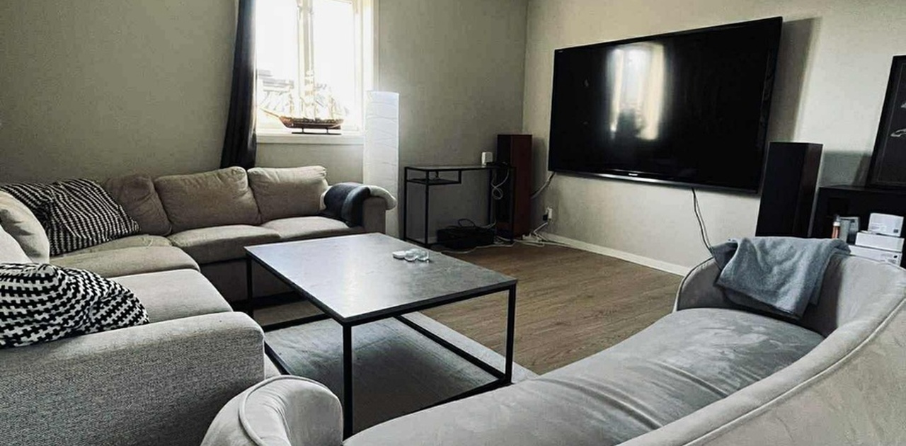 Hegrenesveien 1 has a total of three bedrooms, one of which will be rented out from 1 January to 31 July 2026, as one of the tenants is moving abroad for work. The shared flat is cosy and spacious, with its own office and an attic living room where guests can stay overnight. The apartment also has an annex, which is a favourite spot for movies or parties.