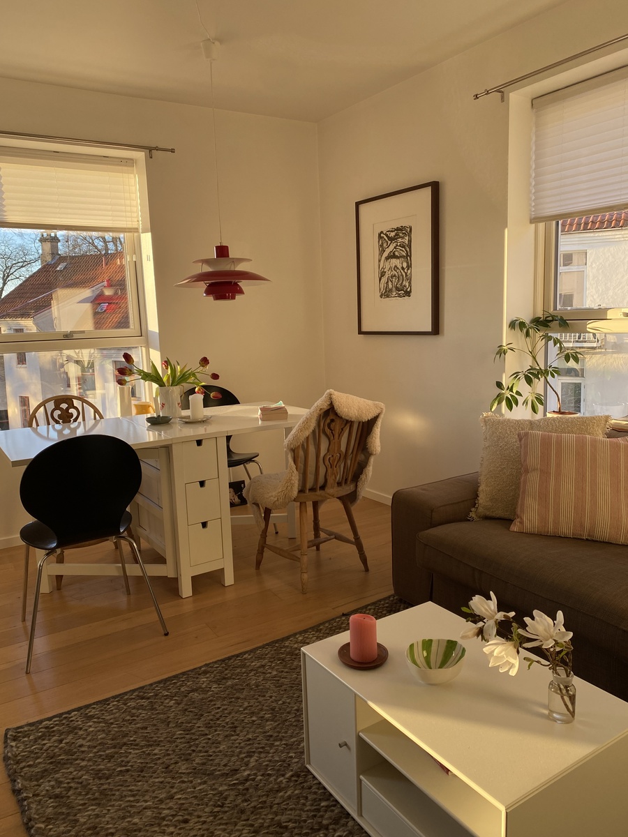 Jeg er 24 år, fra Bergen, og går nå siste året på medisin🥰 Det er viktig for meg at vi sammen skaper et hjem der begge trives🫶🏼Sandviken er helt nydelig å bo i, spesielt om vår/sommer, med lett tilgang til morgenbad, fjellturer og en pils på Falske Reker. Anbefales!