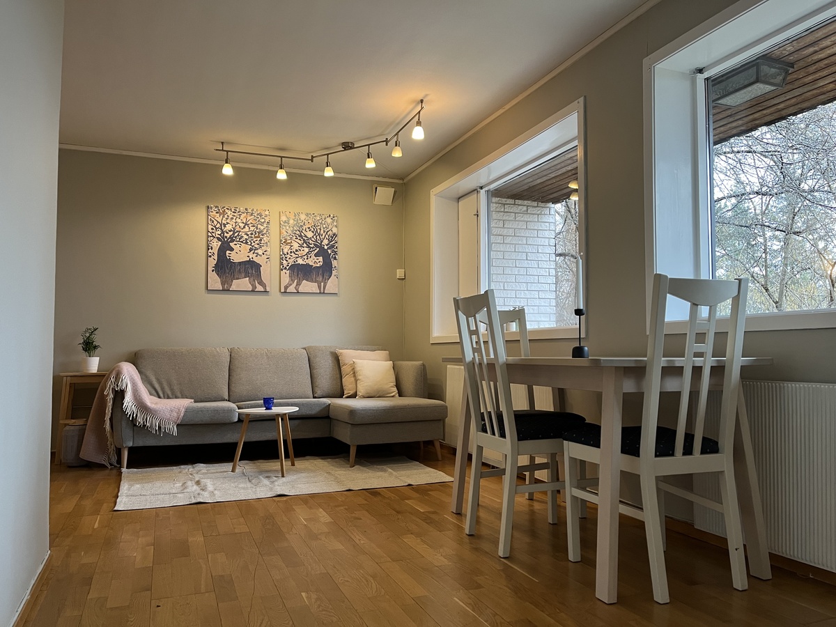 Huseierne er hyggelige og fleksible, og også leietaker over gangen er trivelig. Vi er opptatt av at det skal være trivelig å bo her, og ser etter en hyggelig og ordentlig person til å flytte inn. Hvis dette er interessant, er det derfor supert om du kan skrive noen ord om deg selv, så kan vi eventuelt avtale visning.