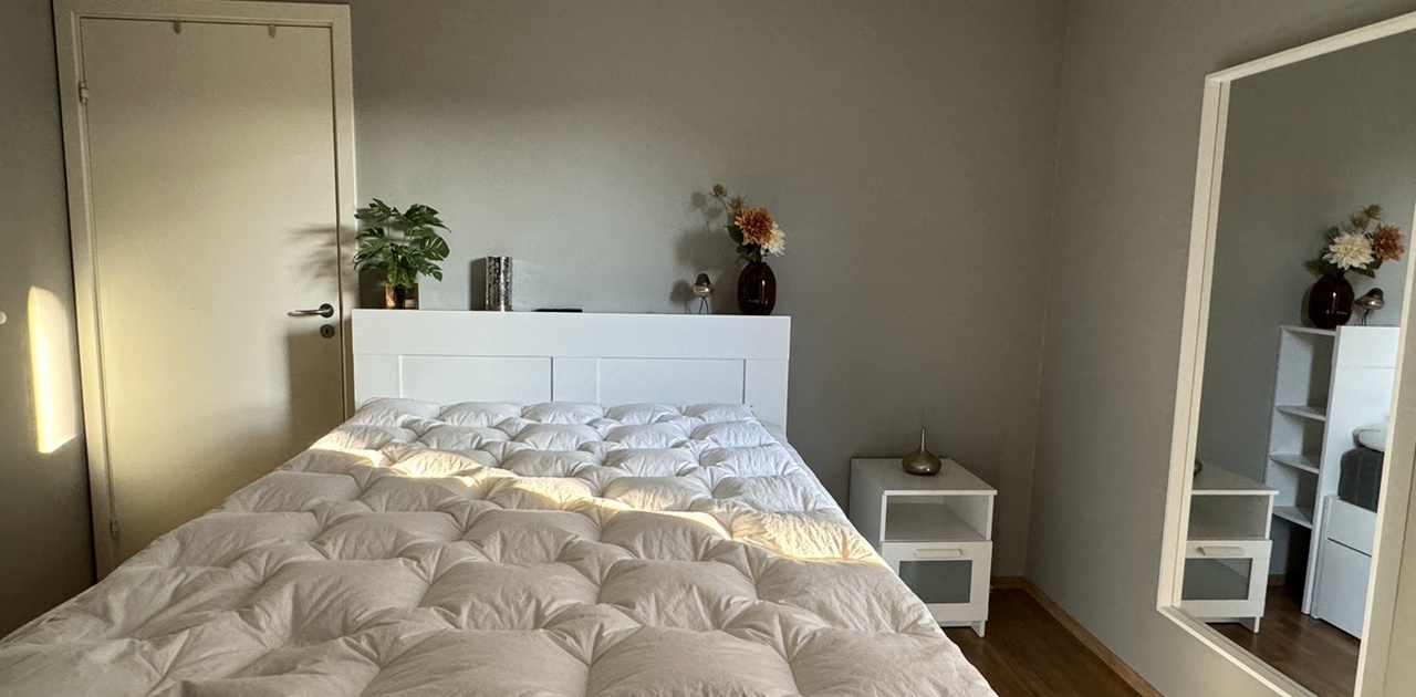Rommet er stort og privat, med eget bad og egen bod som kan brukes som walk-in-closet eller kontor. Leiligheten deles med to rolige og ryddige personer og passer for deg som ønsker et komfortabelt og praktisk sted å bo over tid.