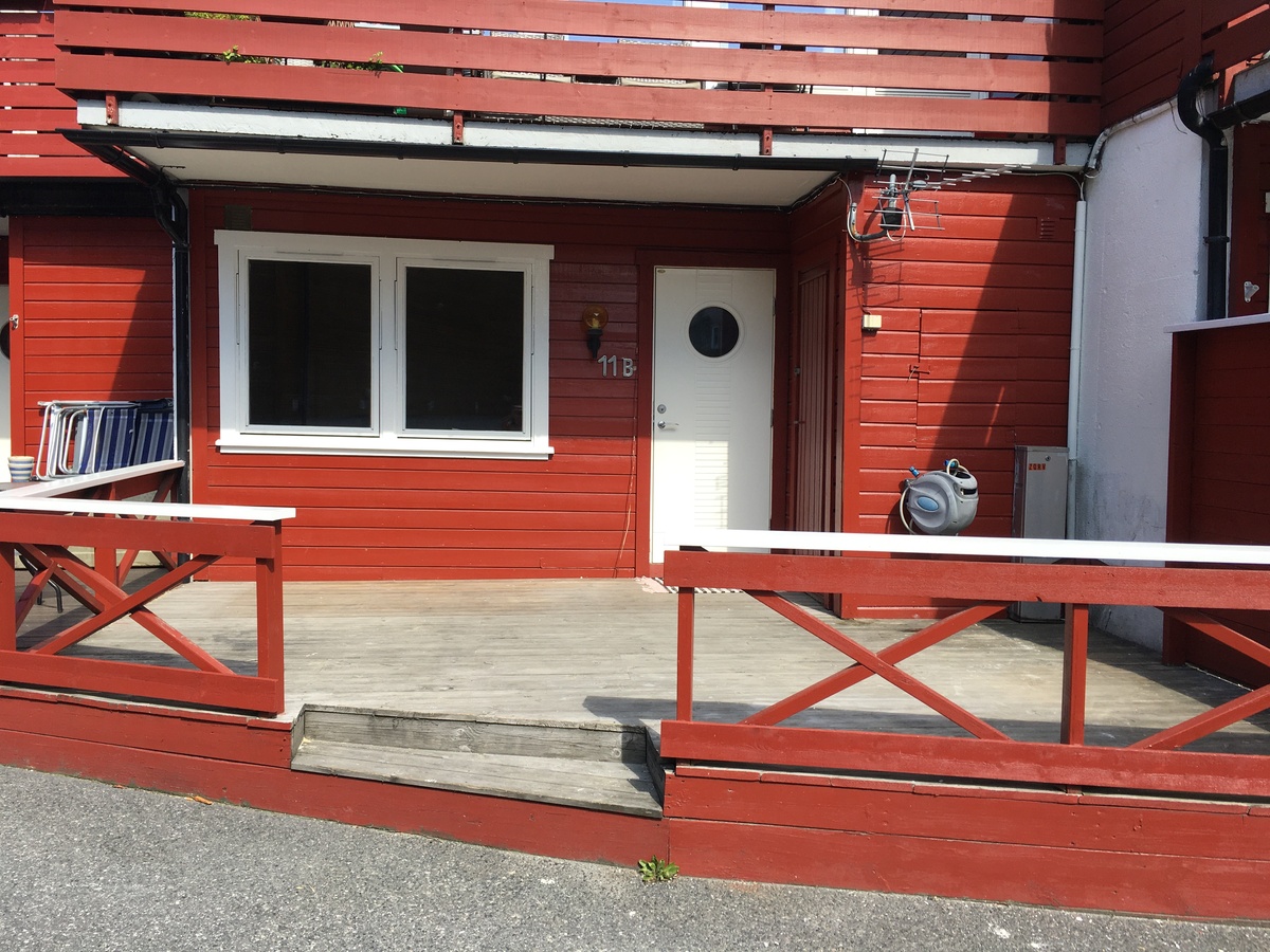 Liten utvendig bod , entre, bad med dusj, toalett og mulighet for vaskemaskin. Lite soverom , stue med åpen kjøkken løsning.