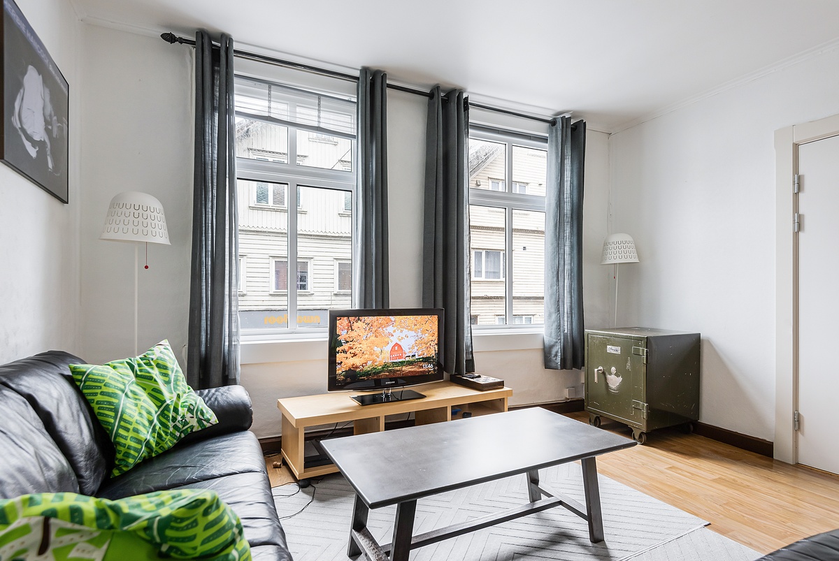 Beliggenheten er svært sentral – parallelt med Haraldsgata, nær butikker, restauranter, Smedasundet og offentlig transport.