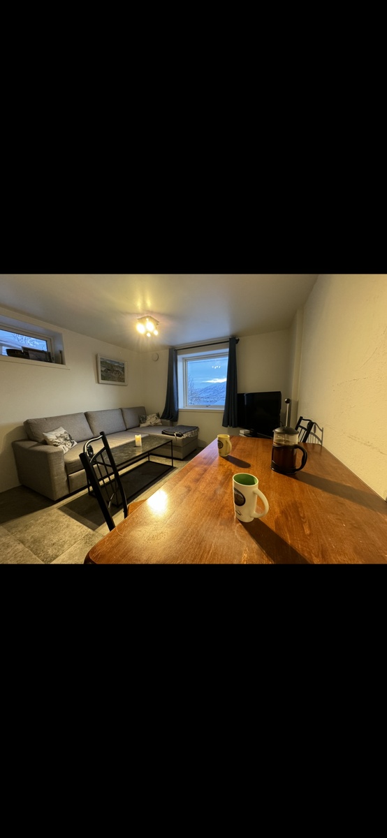 Leilighet med god utsikt midt mellom UIT og sentrum. To soverom, stue, bad, kjøkken og et lite vaskerom. Varme i alle gulv utenom soverom og vaskerom.