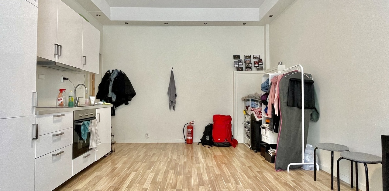 Flott hybel for 1 person til leie i hjertet av Bergen sentrum: Olav Kyrres gate 45. Hybelen har eget kjøkken og felles bad i gangen med en annen hybel i samme etasje.