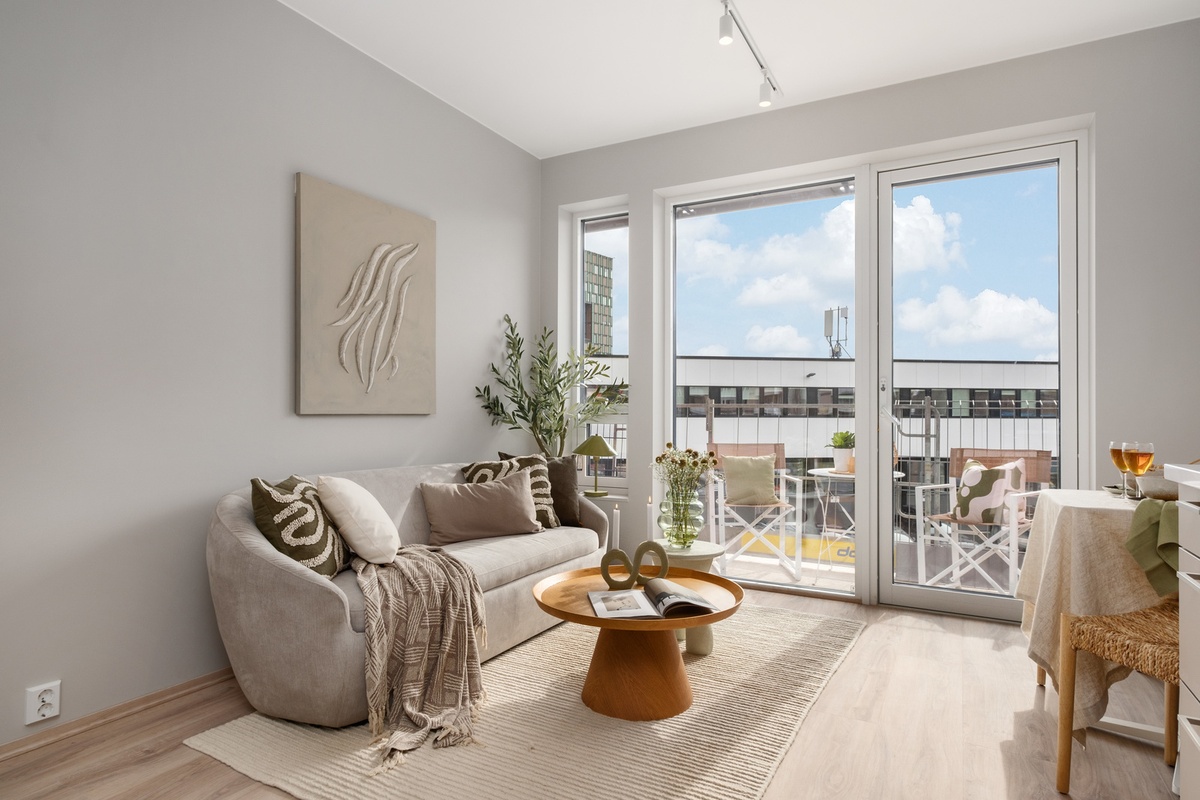 Vi har stylet en av leilighetene før fotografering for å vise hvordan man kan møblere en 1-roms, men alle leilighetene leies ut uten møbler og interiør med unntak av det som er beskrevet over her. Håper bildene kan gi litt inspirasjon.