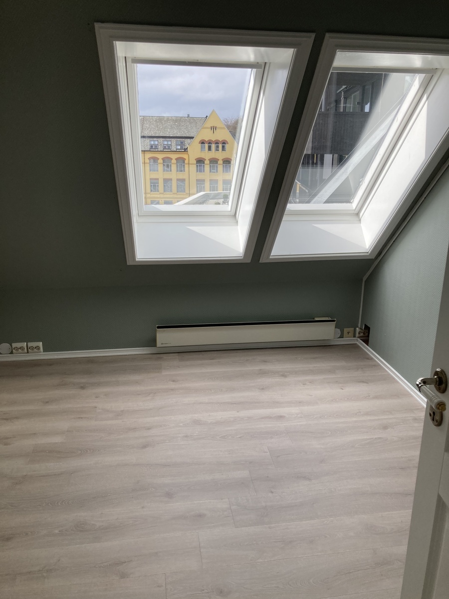 Nyoppusset loftsleilighet ledig i sentrum av Ålesund. Leiligheten ligger like ved Bybadet og turområder på Aksla. Kort vei til buss og byens faciliteter. Stor hage som kan benyttes.
