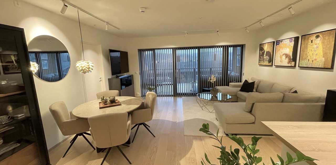 Ny og moderne leilighet fra 2022 i Sukkevannslia på 89 kvm med 3 romslige soverom, egen vest-vendt terrasse på 22,7 kvm med kveldssol og kort vei til sjøen: