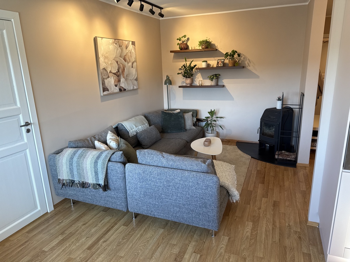 Leiligheten ligger i 2. etage, har åpen stue- og kjøkkenløsning, et bad, 3 soverom og en koselig, solrik balkong! Det hører også med to boder til leiligheten, en i kjelleren og en på loftet. Det er en kombi vaskemaskin/tørketrommel i leiligheten, i tillegg til fellesvaskeri i kjelleren. Soverommet leies ut umøblert, men det er innredet med klesskap.