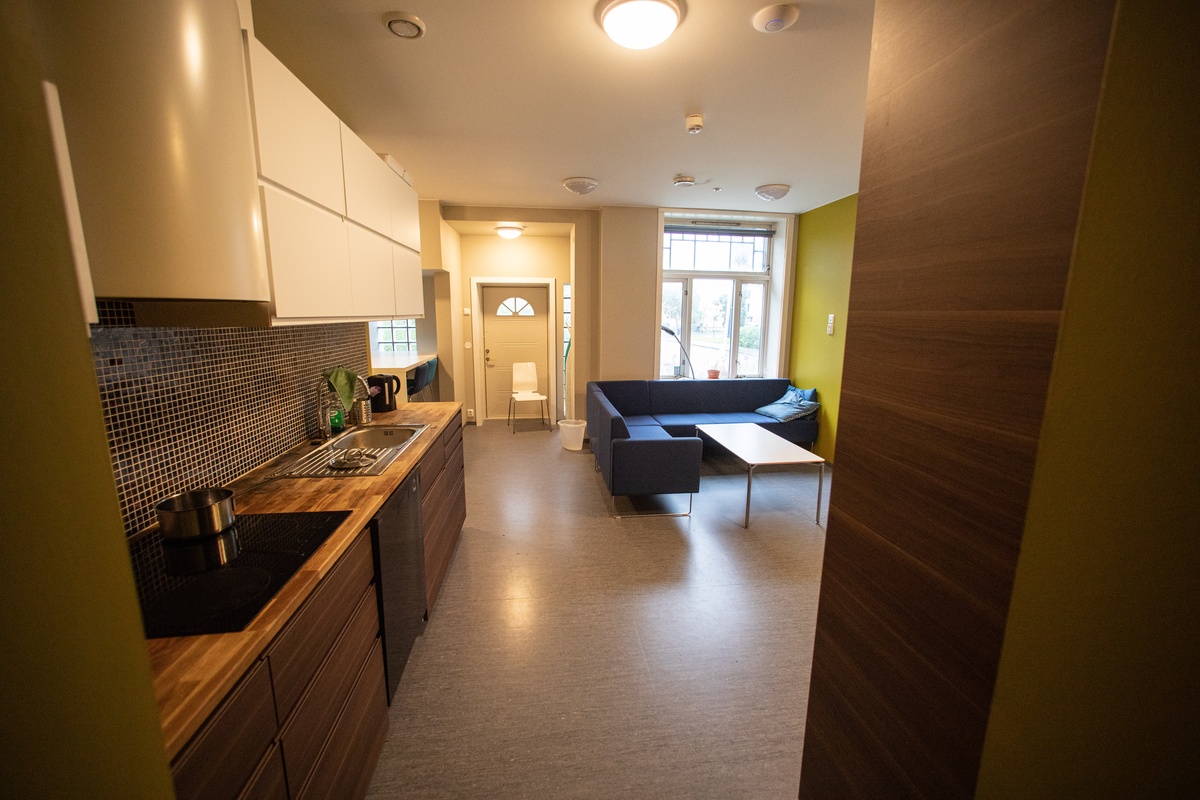 Store fellesareal som er moderne møblert. Alt av hvitevarer og kjøkkenutstyr. Bad med dusj og wc, åpen stue/kjøkken-løsning. Fellesvaskeri med to vaskemaskiner og tørketrommel, eget tørkerom og lagerbod i kjeller. Ekstra dusj i kjeller. Utvendig sykkelbod. Internett inkludert, strøm kommer i tillegg med fast pris på 450 kr. pr. mnd. Leies kun ut til studenter. Totalt fem rom i bofellesskapet.