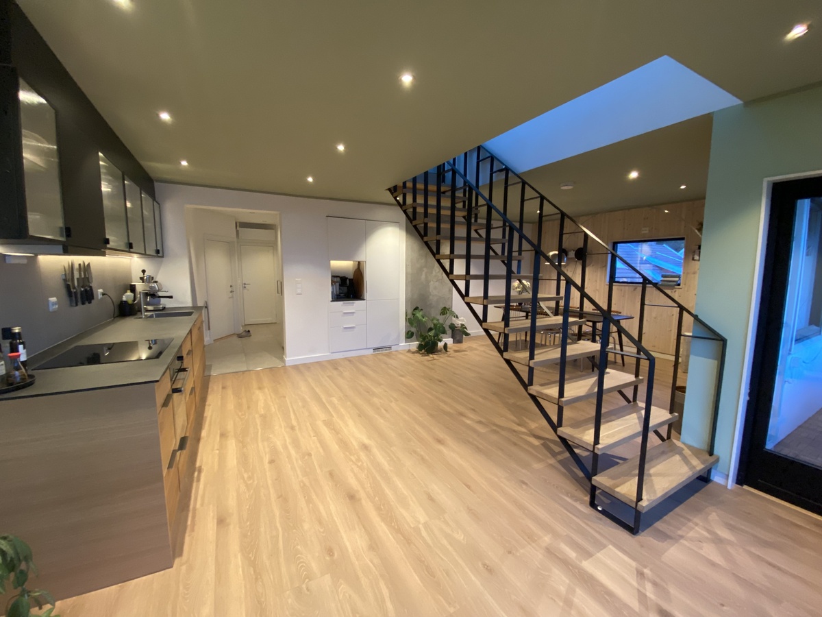 Leiligheten ble totalrenovert i 2023, og er komfortabel og moderne. Vegger og tak er etterisolert, og alle vinduer er byttet. Oppvarming med varmegulv i gang og på badene, og varmepumpe.