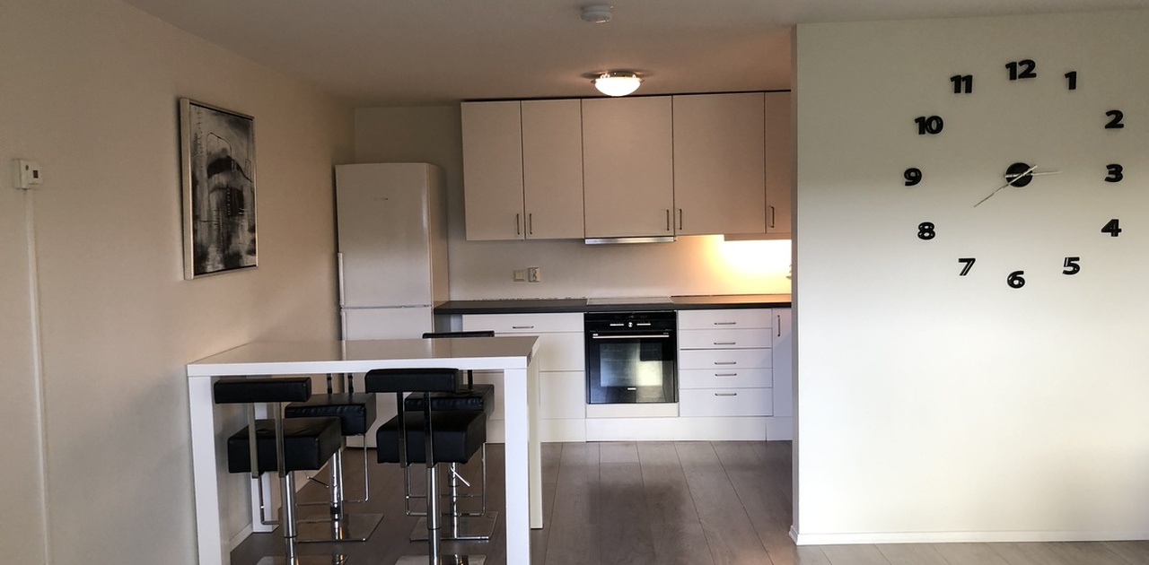 Leiligheten er på 71m2 med egen inngang og er fullmøblert. Leien inkluderer møbler, hvitevarer, parkeringsplass og bredbånd.