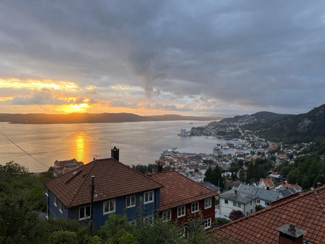 I Breistølen bor du tett på naturen, har tidenes utsikt over fjord, Stoltzen og og Sandviken. Man er kun 20 min gange unna sentrum (du bruker litt lenger tid opp igjen :). Man kan også ta buss nr 10 som går direkte til sentrum, eller bruke Fløybanen. Fra huset er du faktisk aller nærmeste nabo til Tippetue (hovedtursti til Fløyen) og byfjellsgrensen. Foruten balkong med sol fra kl 18 og til solnedgang (samt morgensol 9-12 i "kaffekroken" som vi kaller den), deler man hage og uteplatting med resten av huset. Her er det sol døgnet rundt (så lenge det er sol i byen).