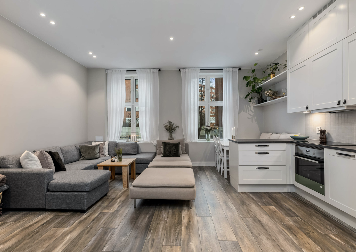 Leiligheten er lys og fin, med god takhøyde og varme i gulvet i flere rom. Leiligheten er møblert, soverommet er umøblert. Mulighet for overtakelse av noen møbler fra hun som flytter ut.