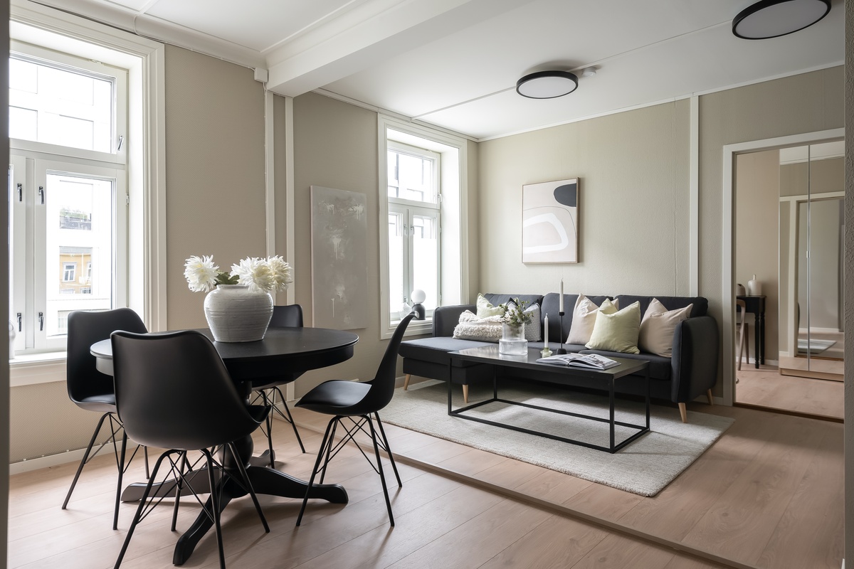 - Stor leilighet med høy standard og med gode materialvalg, fine farger, god takhøyde (ca. 250-260 cm), store vinduer med mye lysinnslipp.
