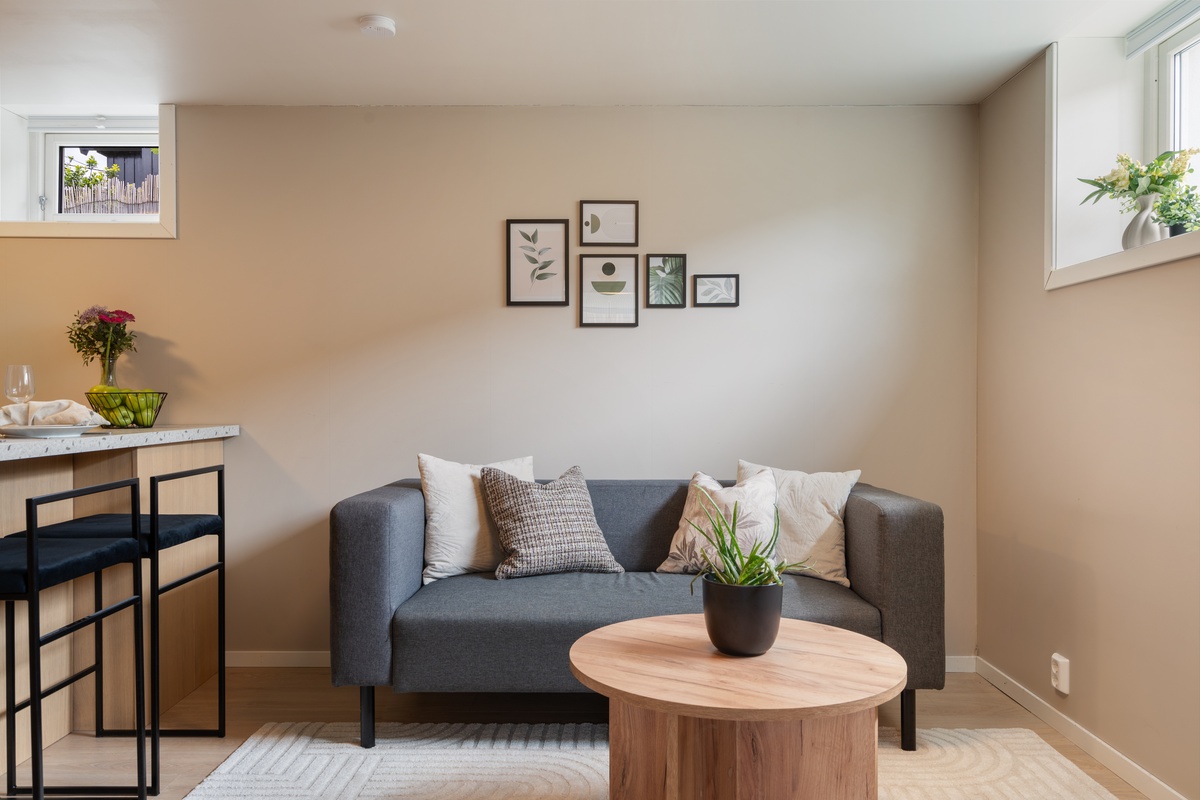 Moderne og innflyttingsklar 2-roms leilighet – alt inkludert, egen hage og sentral beliggenhet