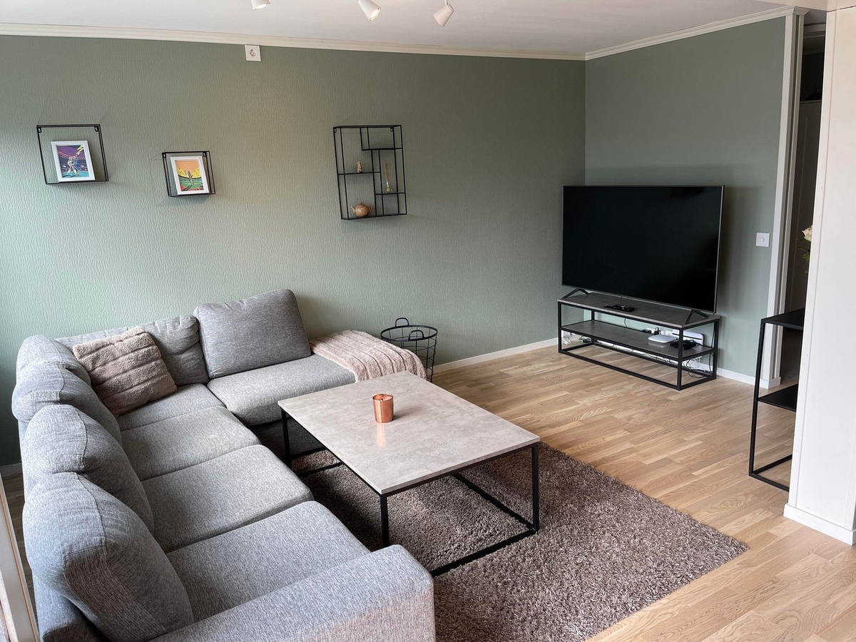 Ypperlig mulighet for ett par, en liten familie eller studenter. Påkostet 3-roms leilighet på 51 m2 ledig fra starten av april. (Kan være fleksibel med dato). Leies ut delvis møblert, med parkeringsplass. Platting på 25 m2, bygd i 2022, med gode solforhold på sommerhalvåret.