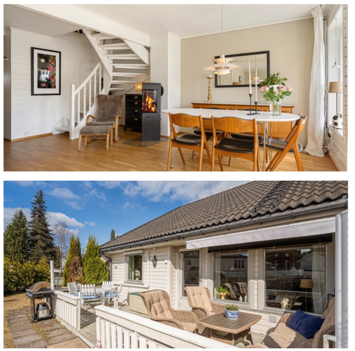 Kjøkken med integrerte apparater: induksjonstopp, oppvaskmaskin, stekeovn, mikro. Stue i 1. etasje med direkte tilgang til solrik terrasse mot sørvest. Meget pent bad fra 2018 med gulvvarme og moderne innredning.