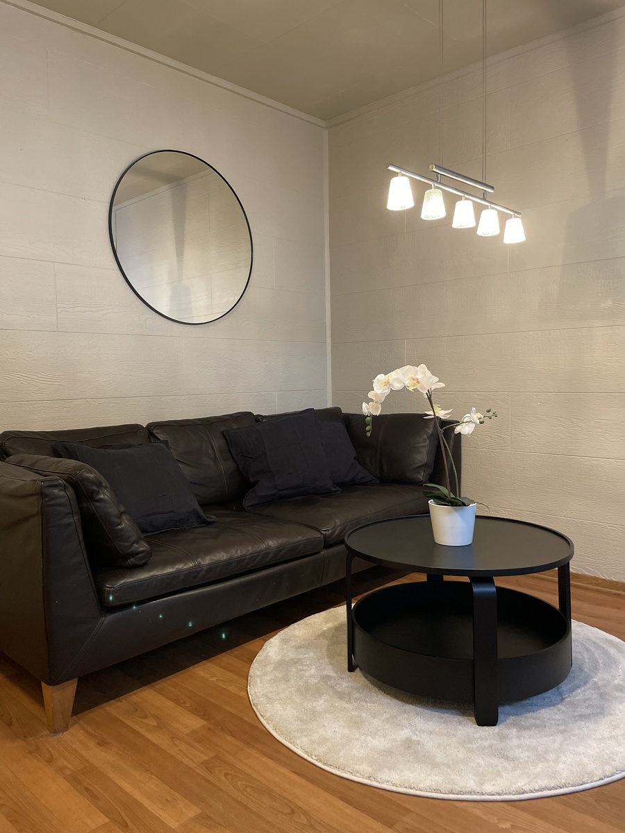 Leiligheten ble delvis oppusset i 2025 og fremstår som lys og innbydende. Den har en åpen stue- og kjøkkenløsning med integrerte hvitevarer, inkludert kjøleskap, komfyr og oppvaskmaskin. Kjøkkenet er ellers fullt utstyrt med det du trenger i hverdagen. Badet er nyoppusset og stilrent, med dusj, toalett og servant med speil.