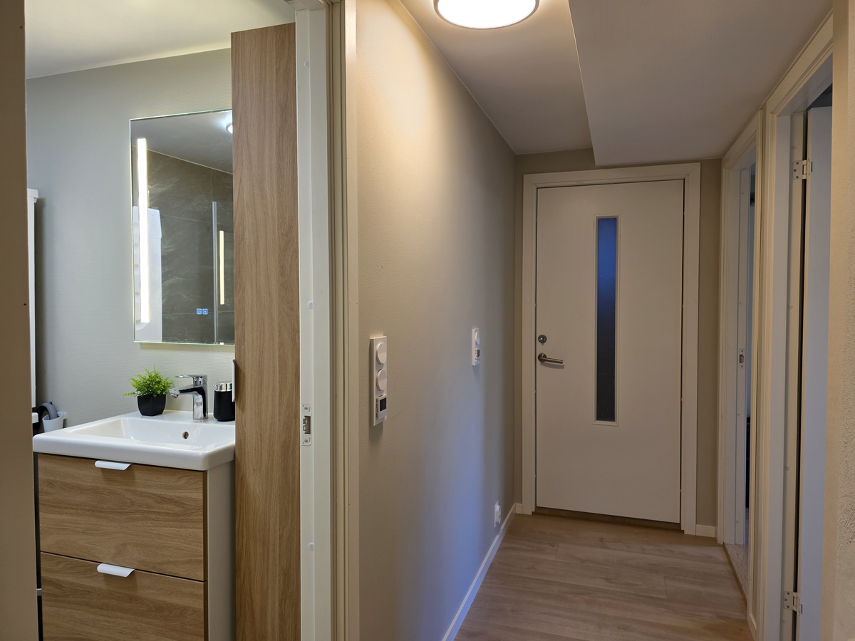 Leiligheten er malt i lyse, fine farger, og absolutt alt var 100 % nytt i 2024. Med 1-stavs gulv, LED-taklamper og gjennomgående god standard er dette et ypperlig hjem for tre personer.