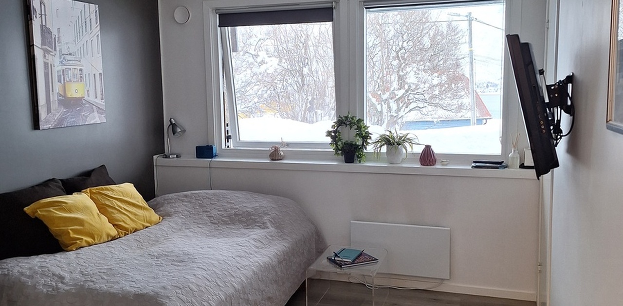 Sentralt beliggende mellom sentrum og UNN. Kort vei til buss og butikk. Inkludert sengetøy, håndklær o.l. Mulighet for parkering. .Leieperiode 04.03.26-30.06.26 med mulighet for forlengelse