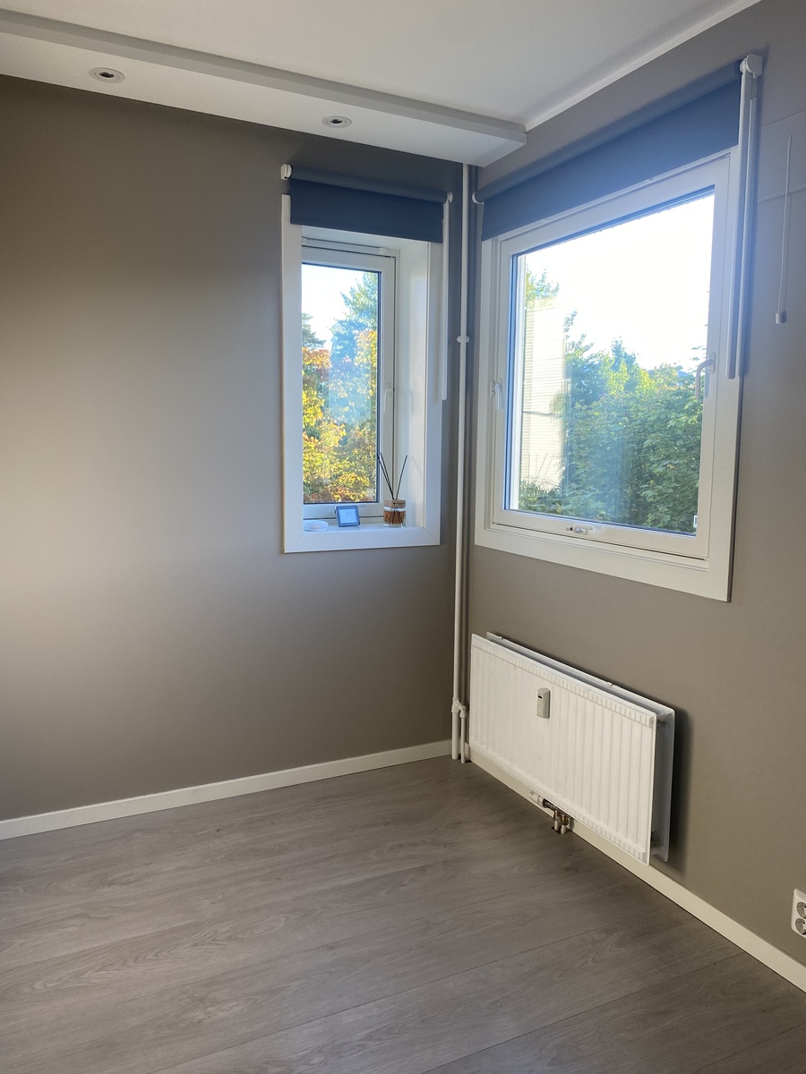 Ett rom til leie . Rommet har en seng og en garderobe. Det store kjøkkenet, balkongen og badet deles med én annen person. Parkering på gaten.