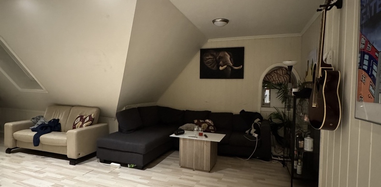 Leiligheten består av 5 soverom/hybler der 3 rom er i 6. etg og 2 rom i 5. etg. Det ledige rommet ligger i 5. etg.