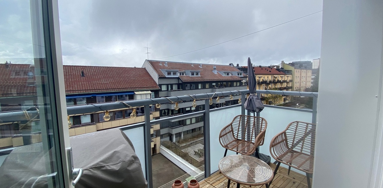 Moderne og lys 2-roms med stor vestvendt balkong og kveldssol. Ledig fra januar for kort eller lang leie. Sofa og seng følger med.