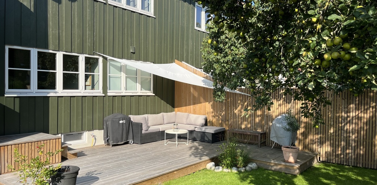 Herlig 3-roms med hage hvor solen skinner fra morgen til kveld!